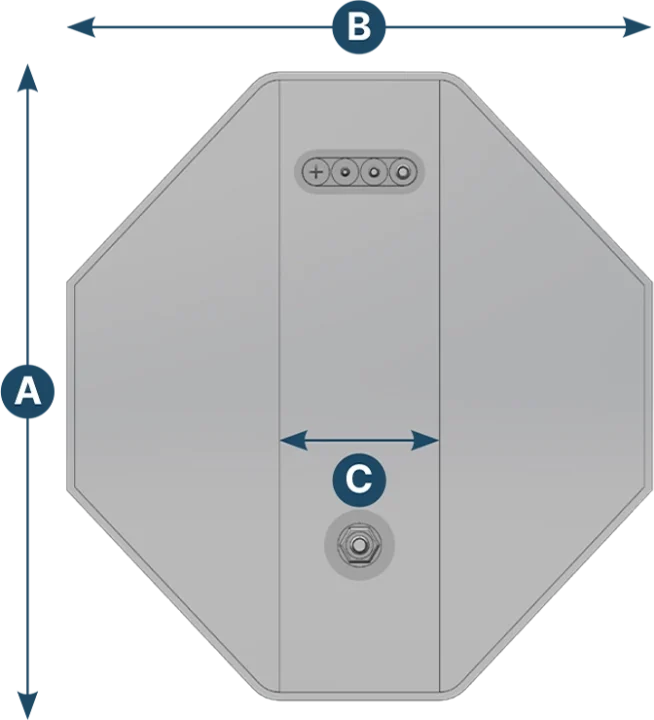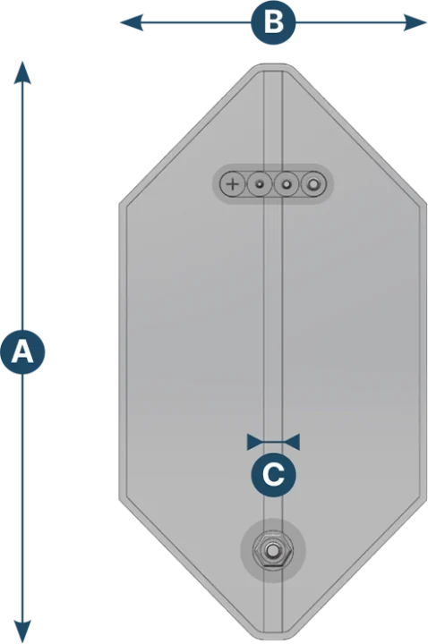 | Capacity (L) | A (mm) | B (mm) | C (mm) |